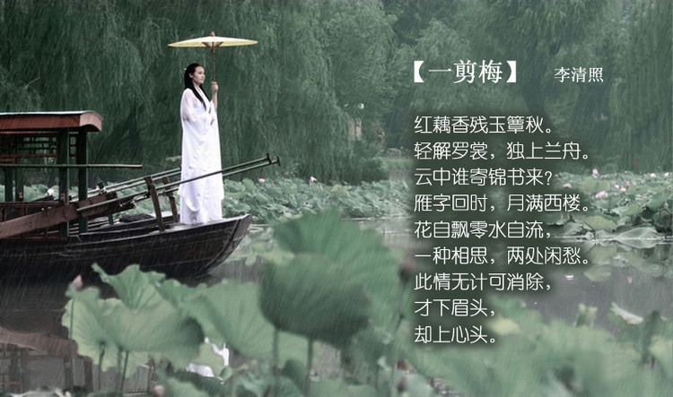 红藕香残玉簟秋,轻解罗裳,独上兰舟。